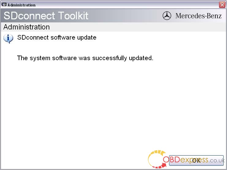 Confirm this message by clicking "OK". Check the SDconnect batteries if necessary and repeat the update process.