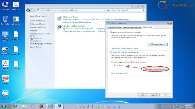 Having installed your language and keyboard in Windows and set the non-Unicode programs to revert to the preferred language in System Locale, you can change the language in DiagBox releases up to v7.72 through the menu and manually for later releases.